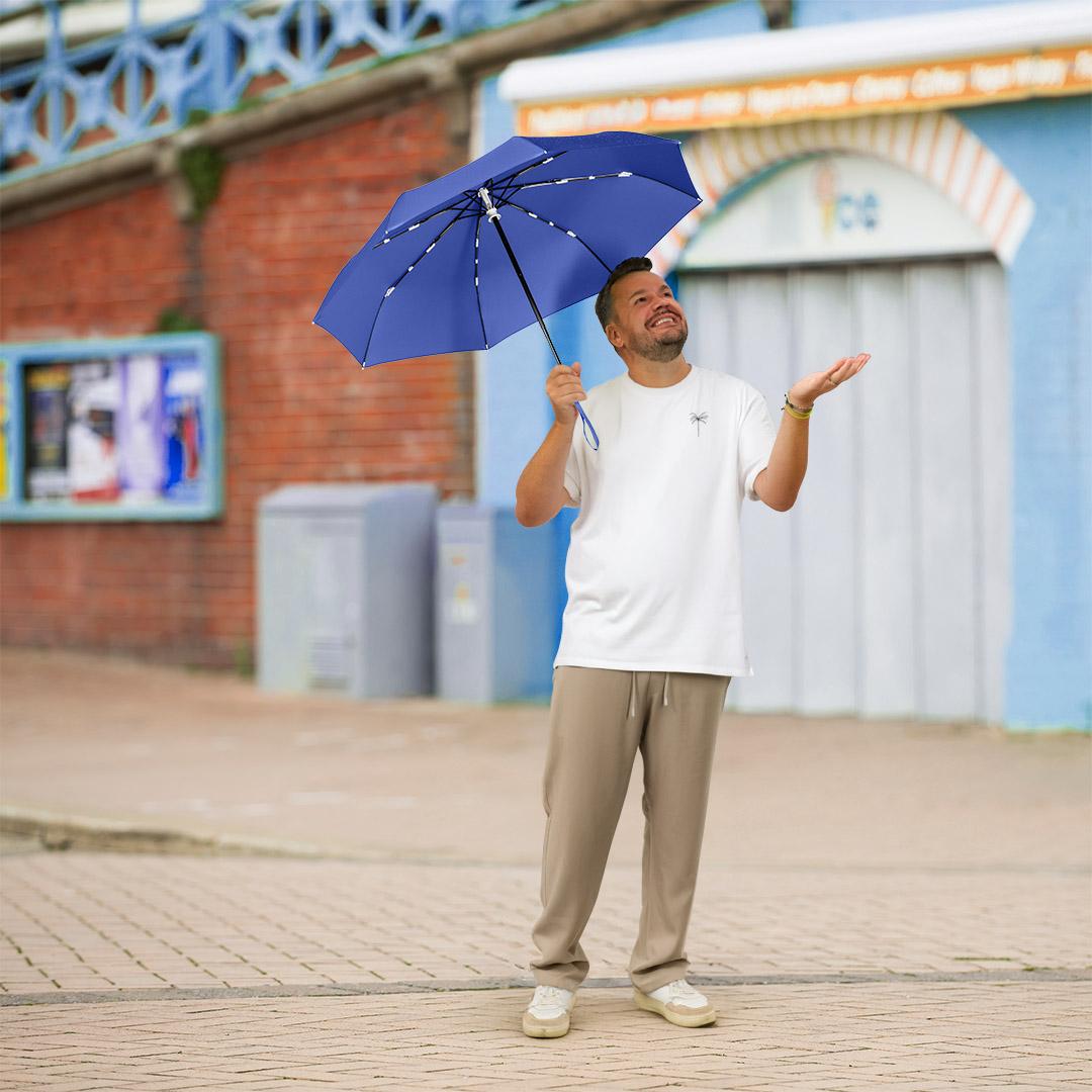 Stylischer Doppelautomatik-Taschenschirm mit weißen Design-Elementen