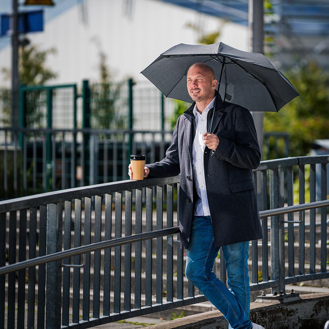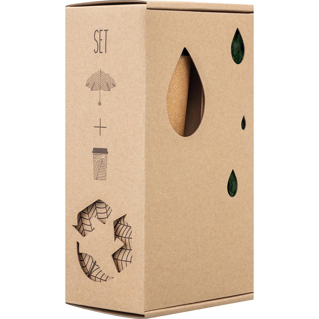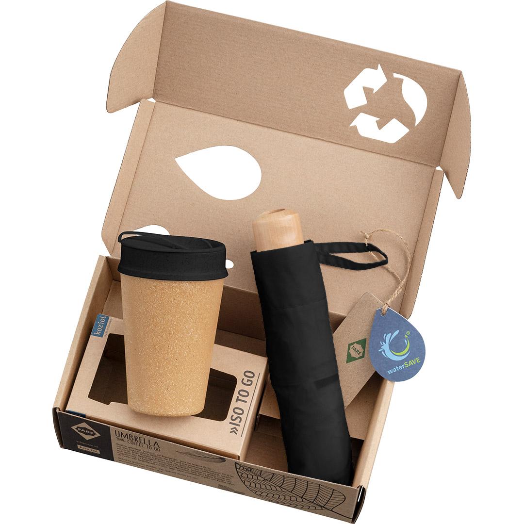 Nachhaltiges Set bestehend aus Taschenschirm und Isolierbecher