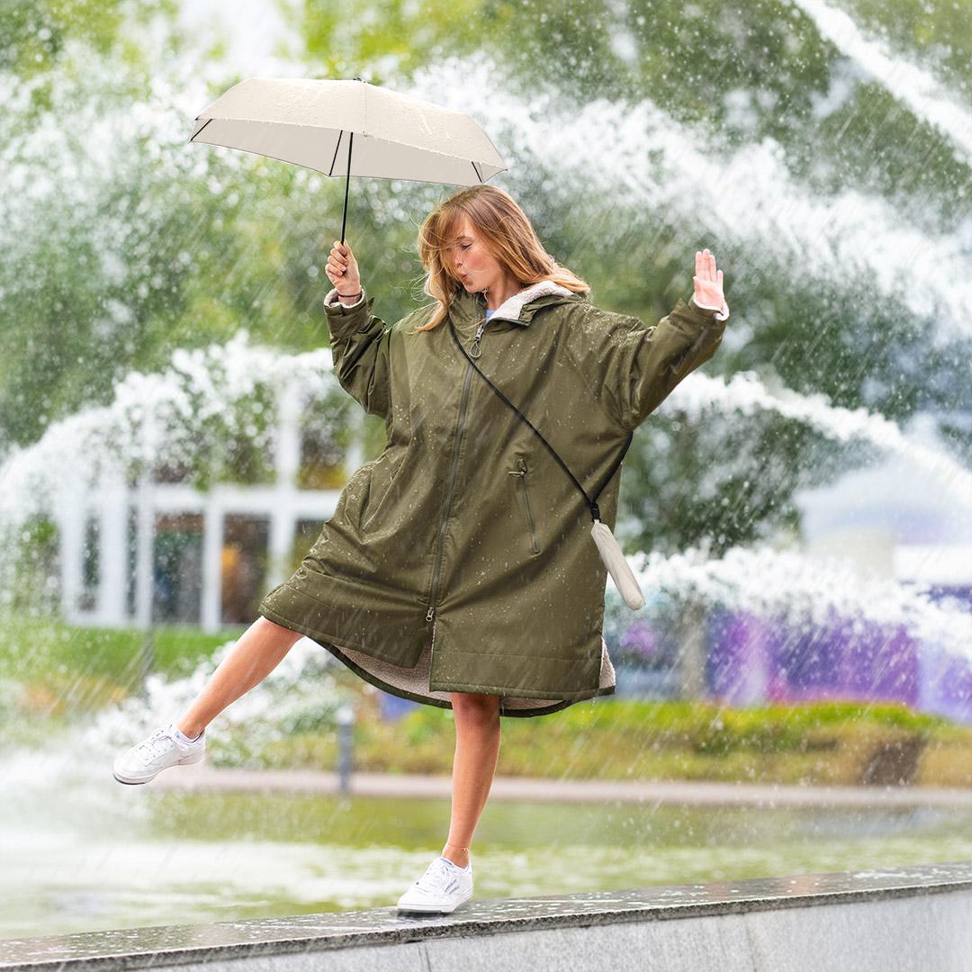 Regen oder Sonne? Mit dem FARE® FiligRain ToGo ist das völlig egal. Dieser federleichte Begleiter schützt zuverlässig vor beidem – und macht damit jedes Sommerabenteuer ein Stück entspannter. Ob beim Sightseeing in der Stadt, auf Festivals oder beim Bummeln durch die Einkaufsmeile: Dank des abnehmbaren Umhängebands ist der Schirm immer dabei, selbst wenn keine Hand frei ist. Sein Bezug aus recyceltem Polyester bietet nicht nur Schutz vor plötzlichen Schauern, sondern mit Lichtschutzfaktor 50+ auch Sonnenschutz an heißen Tagen. Klein, clever und bereit für jedes Wetter.