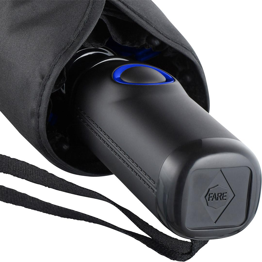 Taschenschirme sind erstens klein und zweitens monoton? Mit diesem Vorurteil räumt der Oversize-Taschenschirm FARE®-Colorline auf. Wie sein Name schon verrät, bietet der Schirm einen Durchmesser von großzügigen 105 Zentimetern. Und was das Thema Color betrifft, bekennen Stock, Gelenke und Auslösetaste selbstbewusst Farbe. Das lockert den gesamten Look erfrischend auf und lenkt den Blick auf Details, die sonst gerne übersehen werden. Wäre doch schade darum.