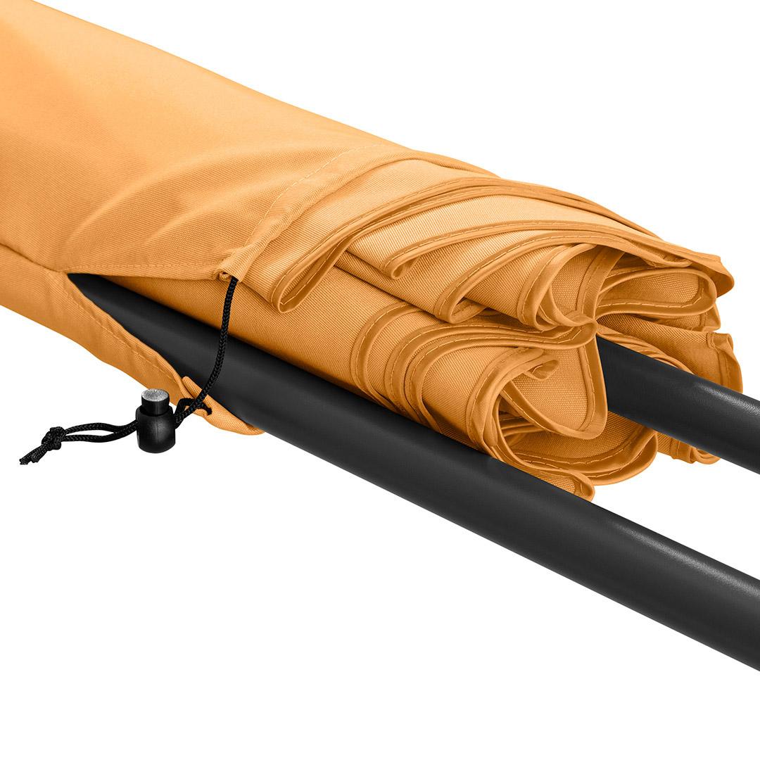 6 x moderner Sonnenschirm mit Gestell in Titan-Finish, Knickvorrichtung und mit Volant