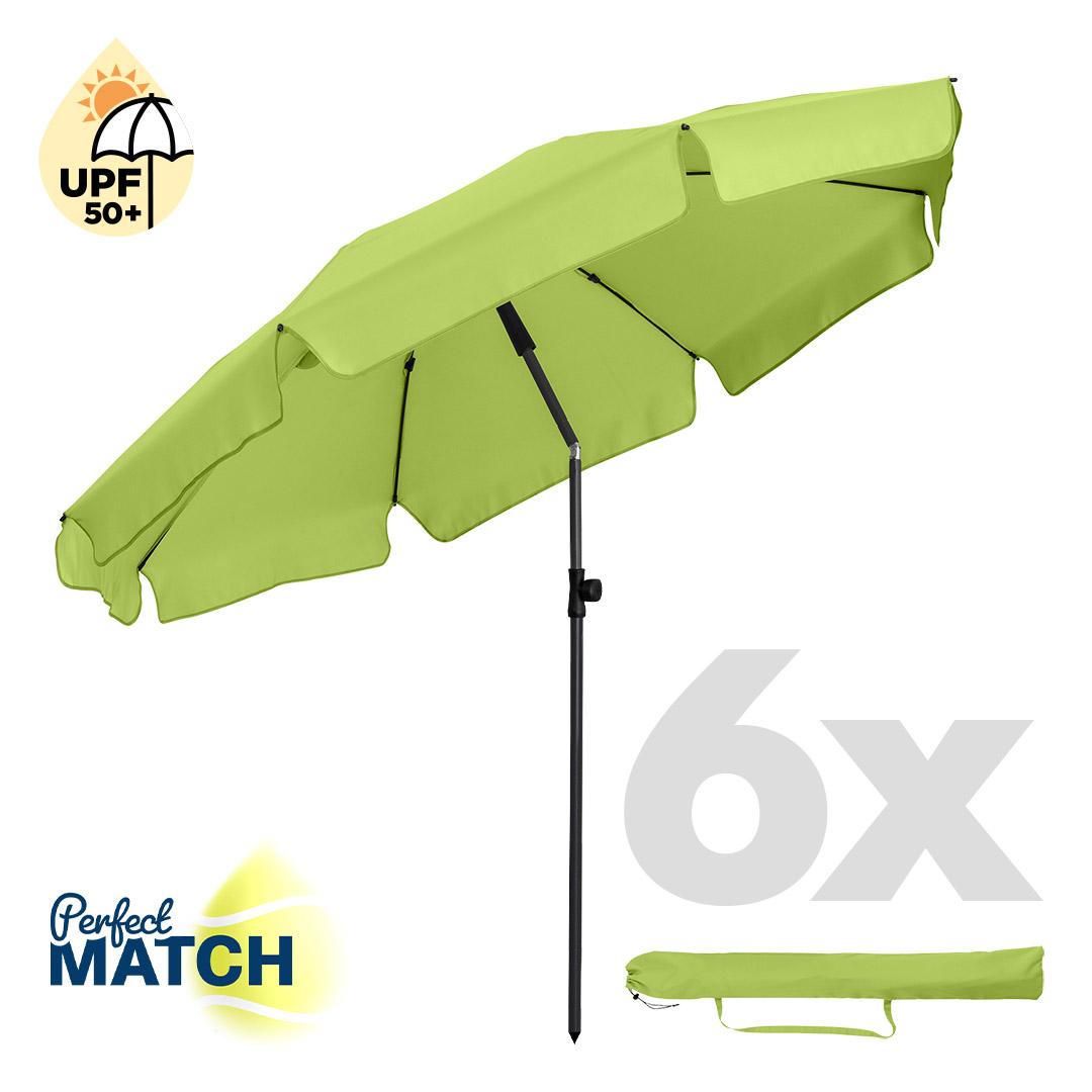 6 x moderner Sonnenschirm mit Gestell in Titan-Finish, Knickvorrichtung und mit Volant