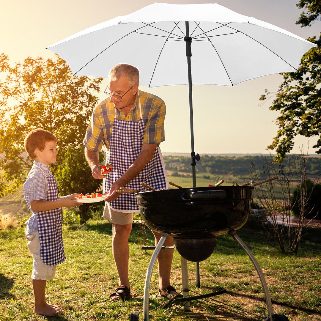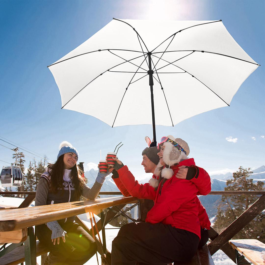Der Sonnenschirm bietet keinen vollständigen UV-Schutz. Bitte die seitliche UV-Strahlung beachten. Weitere Sonnenschutzmaßnahmen werden empfohlen. Es handelt sich nicht um Persönliche Schutzausrüstung (PSA). Weiterführende Information zum UV-Schutz erhalten Sie beim Bundesamt für Strahlenschutz: www.bfs.