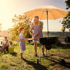 Der Sonnenschirm bietet keinen vollständigen UV-Schutz. Bitte die seitliche UV-Strahlung beachten. Weitere Sonnenschutzmaßnahmen werden empfohlen. Es handelt sich nicht um Persönliche Schutzausrüstung (PSA). Weiterführende Information zum UV-Schutz erhalten Sie beim Bundesamt für Strahlenschutz: www.bfs.