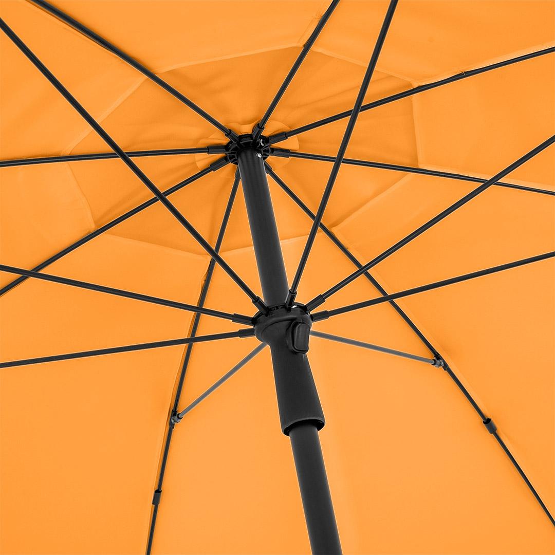Stolze 235 cm Durchmesser und eine Knickvorrichtung zum Neigen des Schirms – damit kosten Sie den Bezug mit Lichtschutzfaktor UPF 50+ so richtig aus. Selbst auf Ihrer XL-Sonnenliege oder mit Freunden im Park sind Sie zuverlässig vor UV-Strahlung geschützt. Übrigens ist dieser Sonnenschirm auch in kleinen Details ganz groß: bei Windböen reguliert ein überlappender Ventilationsbezug den Überdruck. Praktisch punktet der Schirm mit stufenloser Höhenverstellbarkeit, einem Sicherheitsschieber für die einfache Handhabung und einem komfortablen Tragefutteral. Großartig, oder?