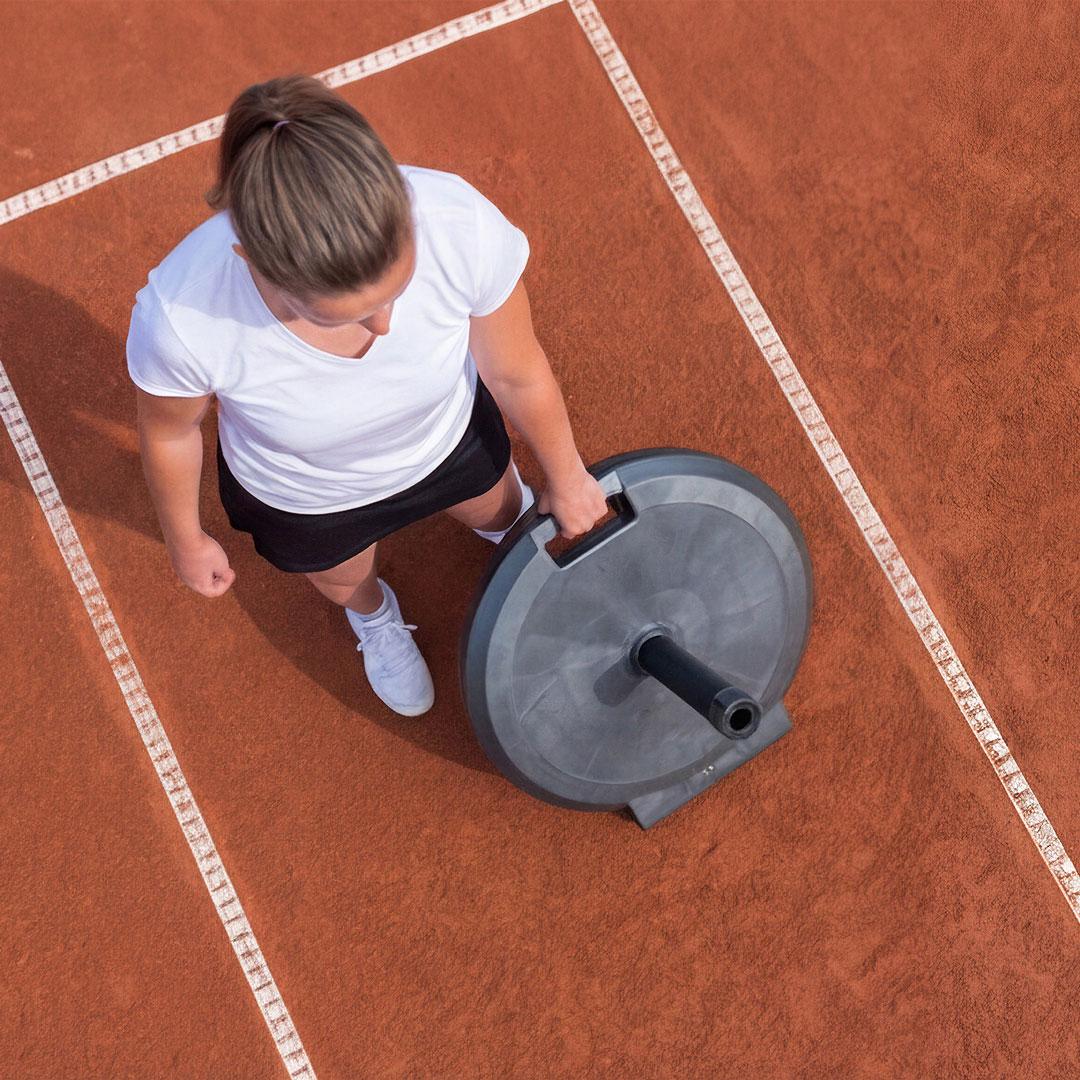 Einen stabilen Halt braucht man nicht nur auf dem Court, sondern auch daneben. Dieser 38 kg schwere Sonnenschirmständer ist die praktische Ergänzung zu jedem Sonnenschirm. Dank seines Gewichtes trotz er auch stärkeren Windböen. Trotz der robusten Ausführung lässt sich der Ständer dank der integrierten Rollen bequem bewegen und flexibel positionieren – ganz ohne schweres Tragen. Ideal für den regelmäßigen Einsatz im Außenbereich. Passt perfekt zum 6er Set PERFECT MATCH I oder PERFECT MATCH II.