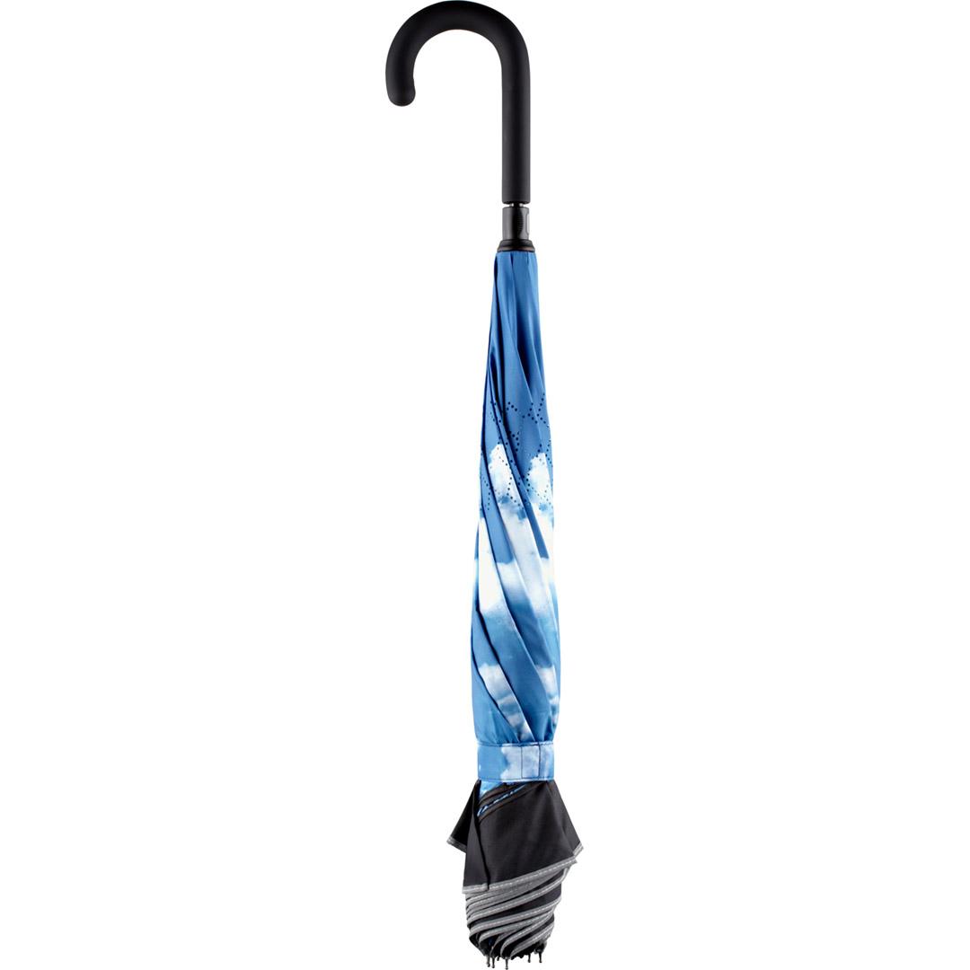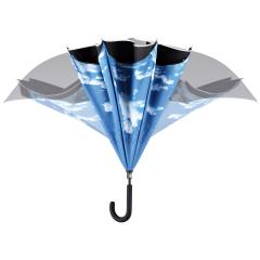 Trendiger Stockschirm mit umgekehrtem Öffnungs- und Schließmechanismus und Wolkenhimmel-Motiv auf dem Innenbezug
