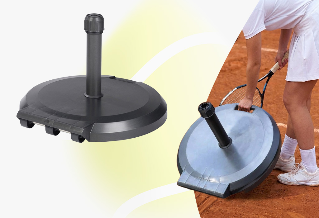 Der Sonnenschirmständer Pro38 mit extra breiten Rollen ist die praktische, perfekte Ergänzung zu unseren Sonnenschirmsets für Tennisplätze. Der extra wetterfeste und widerstandsfähige Kunststoff gewährleistet eine lange Lebensdauer; die Betonfüllung sorgt für ein hohes Eigengewicht (38 kg) und maximale Standfestigkeit. Damit Ihr Sonnenschirm auch bei Wind sicher steht und zuverlässig Schatten spendet.