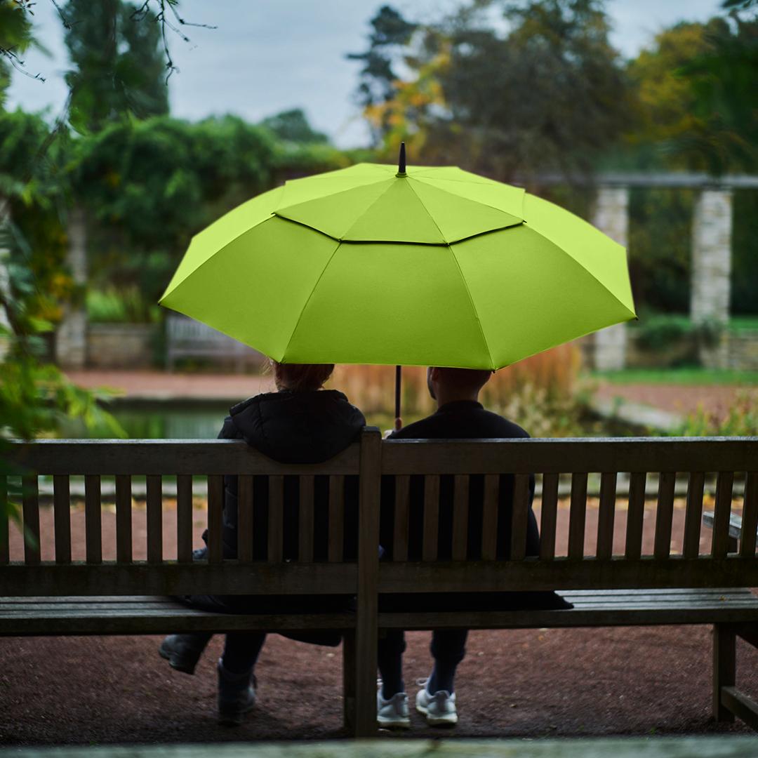 Exclusive automatic golf umbrella for two people with drop motif on the fibreglass shaft