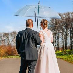 Attractive automatic golf umbrella for two people with transparent cover and coloured details