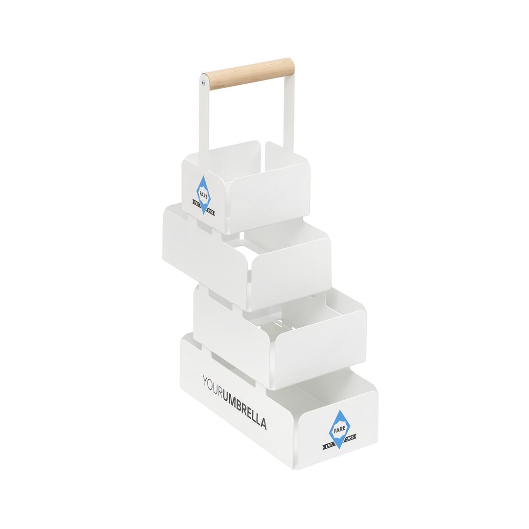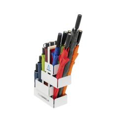 The compact presentation solution for quick use in consultations. This portable FARE® umbrella display is ideal for flexibly presenting selected umbrella models – in the showroom, in meetings or directly during customer consultations.
