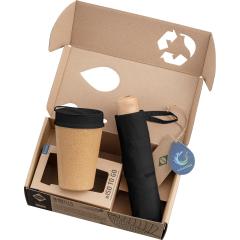 Just a moment ago, rays of sunlight were shining down through the clouds and now the sky is darkening; the FARE® set ÖkoBrella To Go is the indispensable duo for fans of the outdoors, who want to be outside in every weather. The pocket umbrella, with its cover made from recycled plastics, protects from the rain and the insulated cup, made from bio-circular materials and FSC® certified wood, keeps the coffee or tea warm for many hours to come.