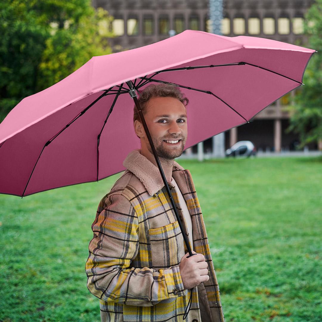 Stylish manual opening pocket umbrella in oversize with fashionable reflective piping