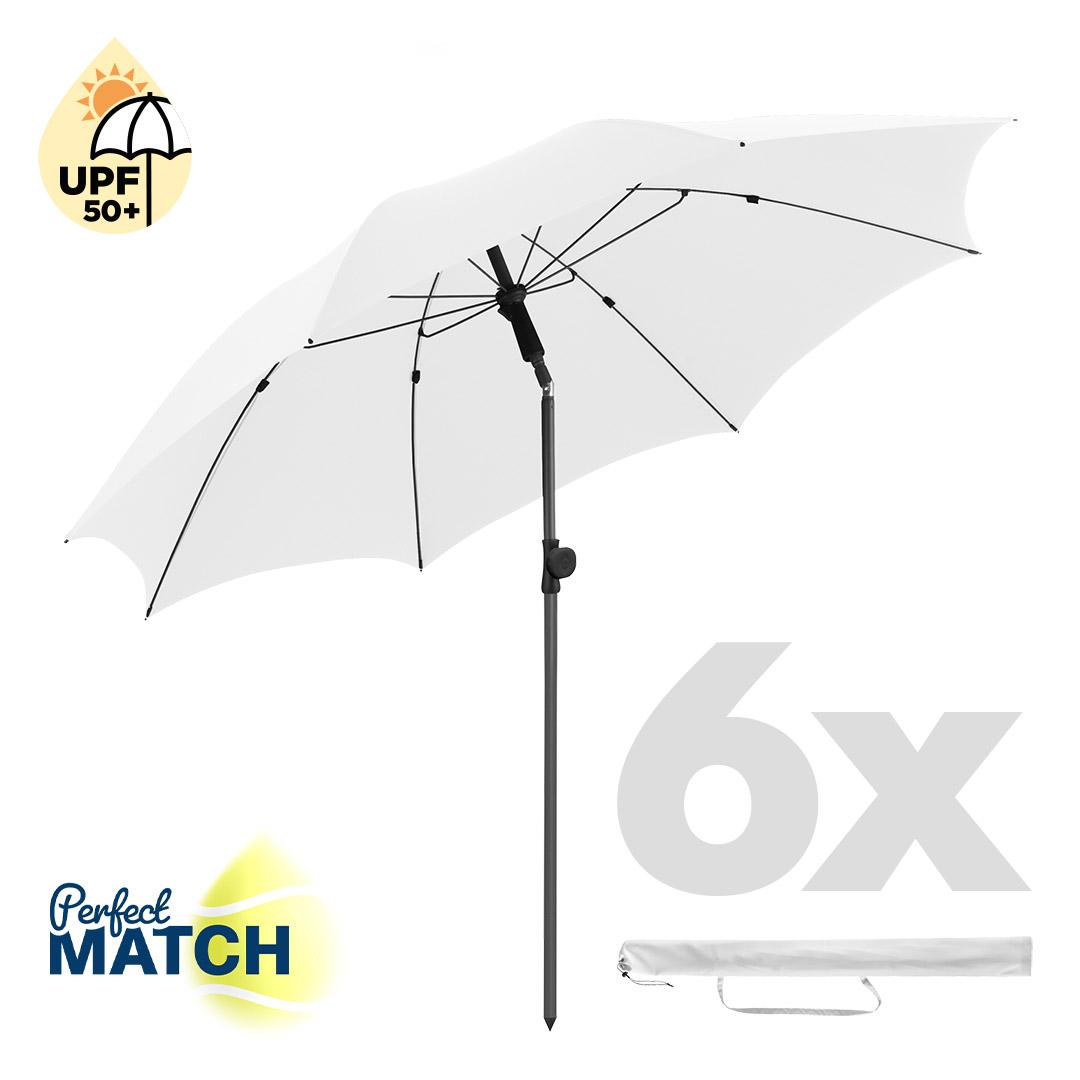 6 x moderner Sonnenschirm mit Gestell in Titan-Finish und Knickvorrichtung