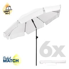 6 x moderner Sonnenschirm mit Gestell in Titan-Finish, Knickvorrichtung und mit Volant