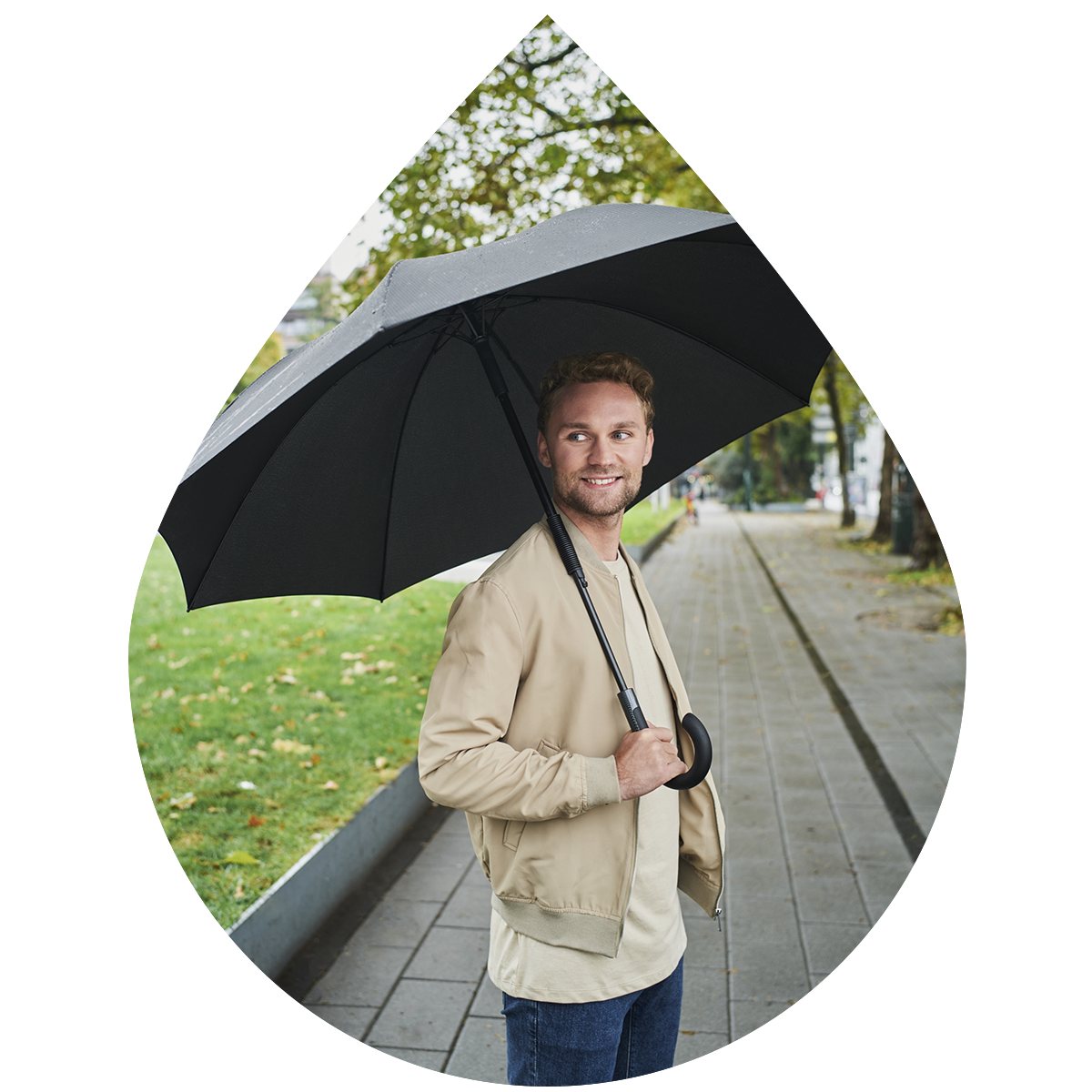Stylischer Automatik-Gästeschirm mit verkürztem Schließmechanismus und Griff in edler Carbon-Optik